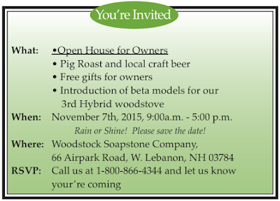 We hope you will join us on November 7, 2015 to help us celebrate 37 years in business, to enjoy a pig roast and some local craft beer, and to take a look at our newest hybrid woodstove, which is our latest and, we hope, most successful attempt to produce an affordable zero-emission wood stove. Please save the date! More details will be posed shortly on our website. We hope you will join us!