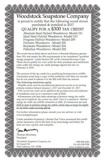 and installed, a Woodstock Soapstone Co. wood stove in 2017 - we have good