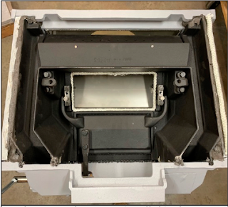 The cement sealant and new gaskets were installed to make the stove a “controlled combustion” stove, meaning the combustion air can only come in through the designated air inlet at the rear of the stove.
